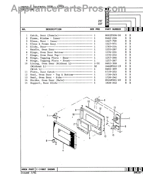 Horizontal oven door seal for top and bottom edges. Replace when worn to restore even heating and efficient baking. Hooks into slots on door frame.