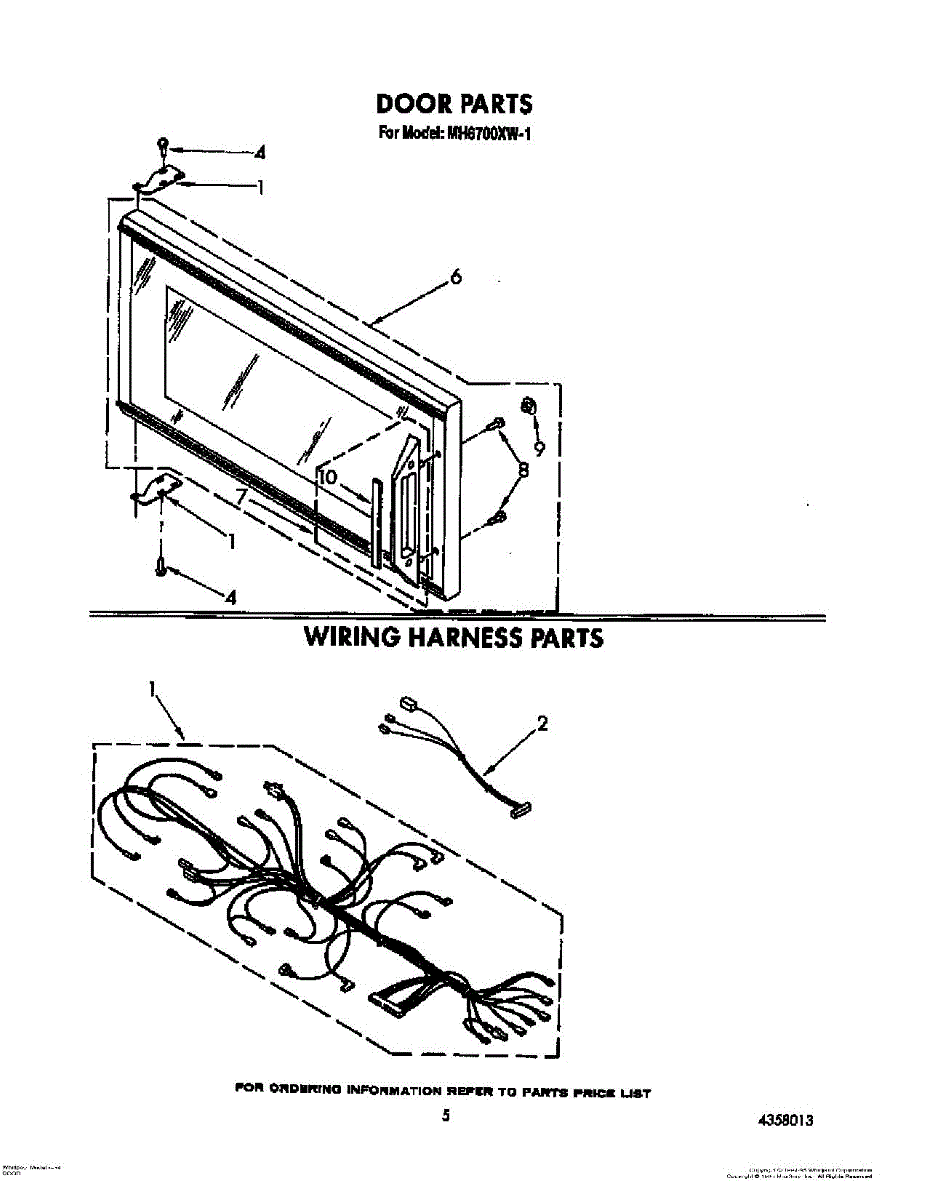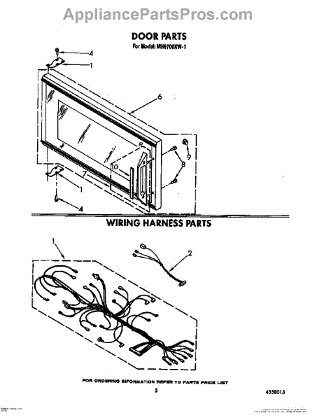 Mounting screw for microwaves. Secures door panels, handles, and internal components. Replace if stripped, missing, or damaged during repairs.