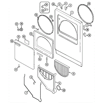 The Door Catch Kit is an OEM part for Whirlpool dryers. It includes the door catch and the necessary mounting hardware to secure it in place. This kit ensures the dryer door remains securely closed during operation, preventing heat loss and ensuring the appliance functions efficiently.