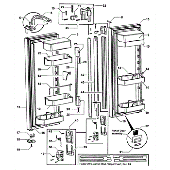 This part consists of a steel flapper and a heater assembly. The steel flapper acts as a door or damper, opening and closing to allow or restrict the passage of cold air from the freezer into the refrigerator section. The heater assembly helps prevent moisture buildup and frost formation around the flapper area.