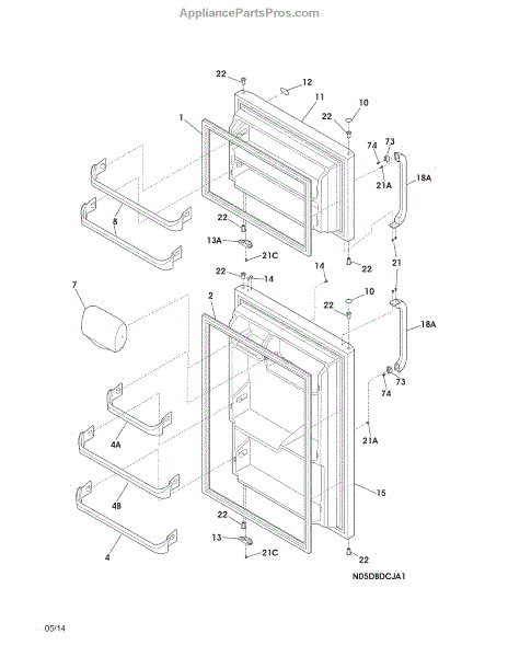 The Handle Mounting Block is an OEM part for Frigidaire refrigerators. This component anchors the refrigerator door handle assembly while also reinforcing the door structure. Causes of a bad mounting block can include cracks developing from repeated opening/closing stresses, broken fasteners loosening its installation, or residual damage during door replacement or repair attempts. Symptoms of a bad handle mounting block include: