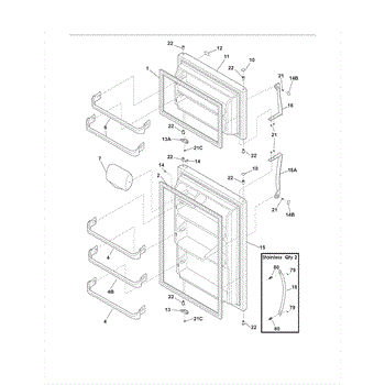 The Door Handle Set is an OEM part for Frigidaire refrigerators, ensuring a perfect fit and finish for your appliance. This set includes handles for both the refrigerator and freezer doors, designed to replace broken or worn-out handles, providing a secure and comfortable grip for opening and closing the doors.