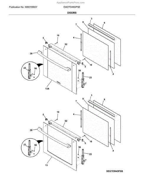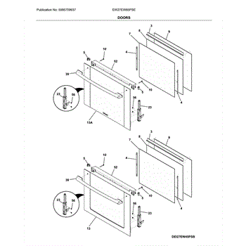 Complete door assembly for wall ovens. Includes outer panel, inner liner, and glass. Replace if your door is cracked, damaged, or has broken hinges.