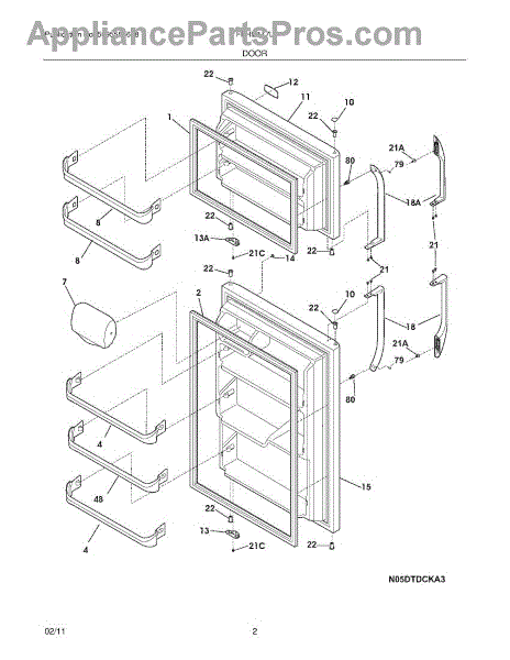This handle set replaces a damaged or worn refrigerator door handle so you can open and close the door securely and restore the appliance's appearance. Designed as a direct-fit service part for compatible Frigidaire refrigerators. What it does: