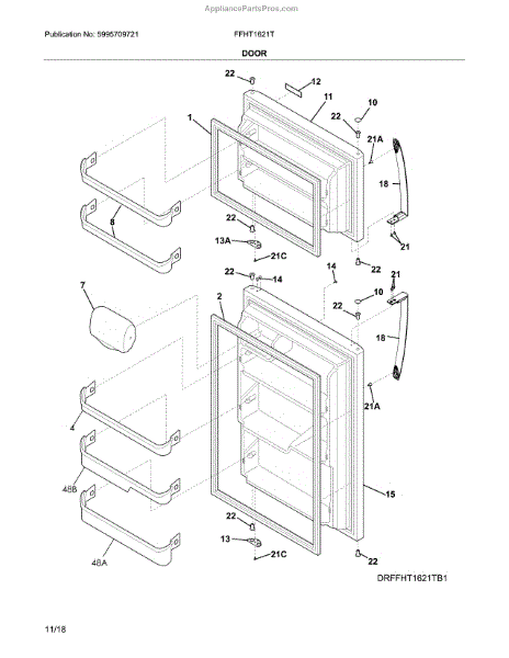 The Door Bin is an OEM part for Frigidaire refrigerators. It is a storage compartment designed to fit securely onto the interior of the refrigerator door, providing convenient and easily accessible storage space for items like beverages, condiments, or other small food items.