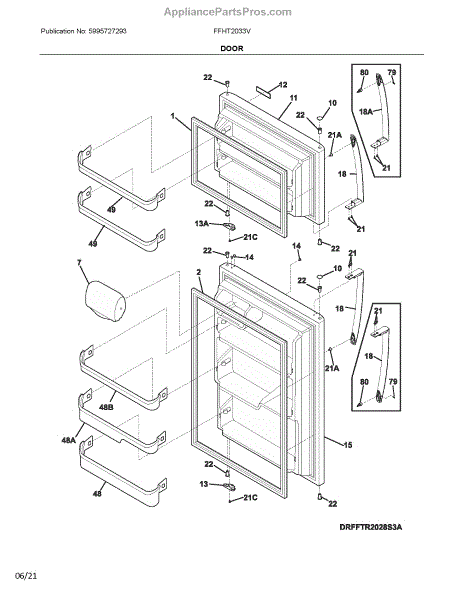 Over time, door handles can become loose, cracked, or break entirely due to frequent use, mishandling, or impact. Replacing a worn or damaged door handle is essential to maintain the functionality and appearance of the refrigerator.
