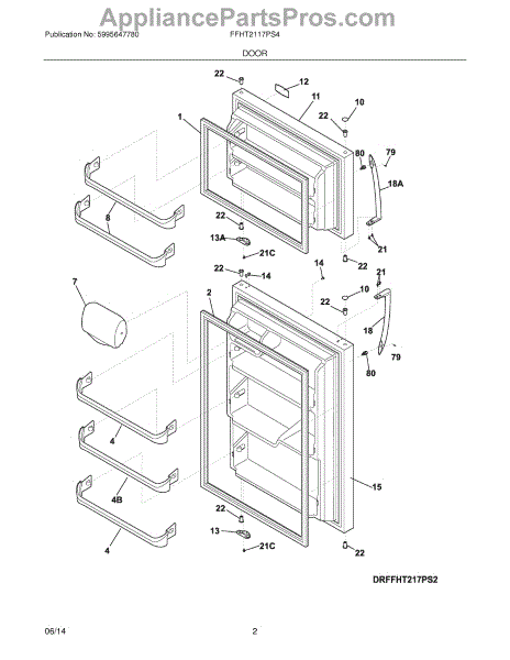 This handle set replaces a damaged or worn refrigerator door handle so you can open and close the door securely and restore the appliance's appearance. Designed as a direct-fit service part for compatible Frigidaire refrigerators. What it does: