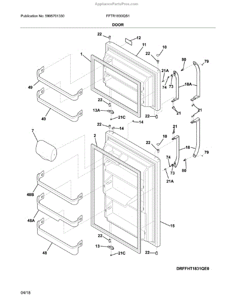 This full refrigerator door replaces a damaged or worn outer door to restore the appliance's appearance and proper access to the fresh-food compartment. It provides a solid closure surface and helps maintain normal cooling performance when properly installed. What it does: