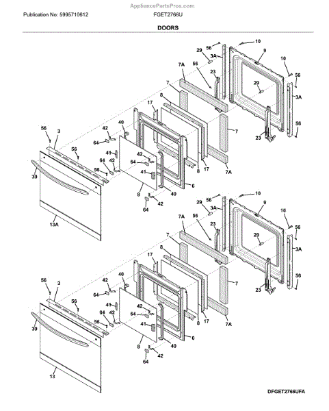 Constant load stress from opening doors causes typical wear degrading precision fit reducing function over years of use. Oven access suffers from misaligned closures.