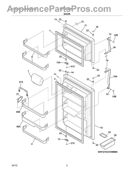 Causes of a bad dairy door include normal wear from repeated opening and closing over time. Exposure to spills inside the refrigerator can also potentially damage door shelf components or seals.