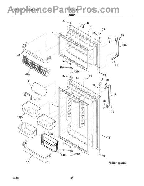 The Freezer Door Shelf Bin is an OEM replacement part for Frigidaire refrigerators. It provides adjustable storage on the inside of the freezer door with removable bin shelves. These bins maximize storage potential in the limited door space through customizable shelving. Causes of a bad Door Shelf Bin can include shelf breakage from heavy loads, damage to supporting rails or walls of the bin inhibiting proper shelf attachment and use, or broken/missing bin walls reducing structural integrity. Symptoms of a bad Door Shelf Bin include: