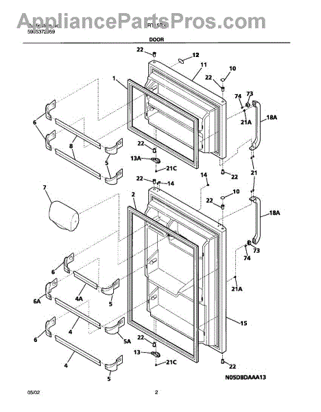 The Handle Mounting Block is an OEM part for Frigidaire refrigerators. This component anchors the refrigerator door handle assembly while also reinforcing the door structure. Causes of a bad mounting block can include cracks developing from repeated opening/closing stresses, broken fasteners loosening its installation, or residual damage during door replacement or repair attempts. Symptoms of a bad handle mounting block include: