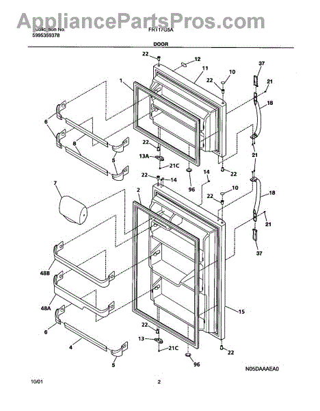 The Door Bin is an OEM part for Frigidaire refrigerators. It is a storage compartment designed to fit securely onto the interior of the refrigerator door, providing convenient and easily accessible storage space for items like beverages, condiments, or other small food items.