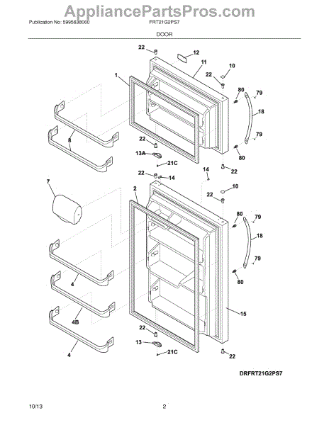 The Refrigerator Door Gasket is an OEM replacement part for Frigidaire refrigerators. As a sealing component, it surrounds the door frame to keep cold air circulating optimally. Proper installation and fit maintains energy efficiency. Causes of failure involve cracks arising over constant compression and expansion during repeated openings. Mineral buildup may also compromise the seal over time. Symptoms of a defective gasket include: