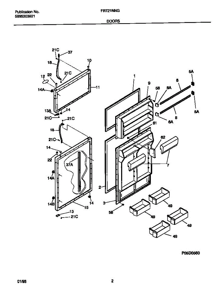 The Refrigerator Door Gasket is an OEM part for Frigidaire refrigerators. This gasket forms a seal around the refrigerator door, ensuring that cold air stays inside and warm air remains outside, maintaining the appliance's efficiency and keeping food fresh.The gasket measures approximately 44.6" X 30.69"