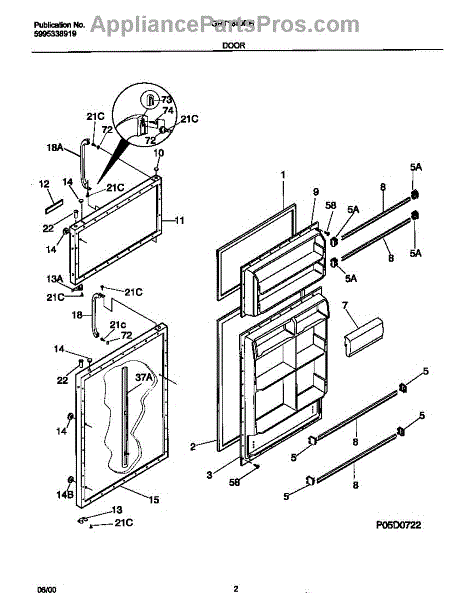 The Door Shelf Support is an OEM part for Frigidaire refrigerators, designed to hold and support the shelves on the inside of the refrigerator door. This part ensures that door shelves are securely mounted, providing stable storage for bottles, condiments, and other items.