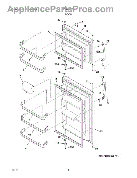 This full refrigerator door replaces a damaged or worn outer door to restore the appliance's appearance and proper access to the fresh-food compartment. It provides a solid closure surface and helps maintain normal cooling performance when properly installed. What it does: