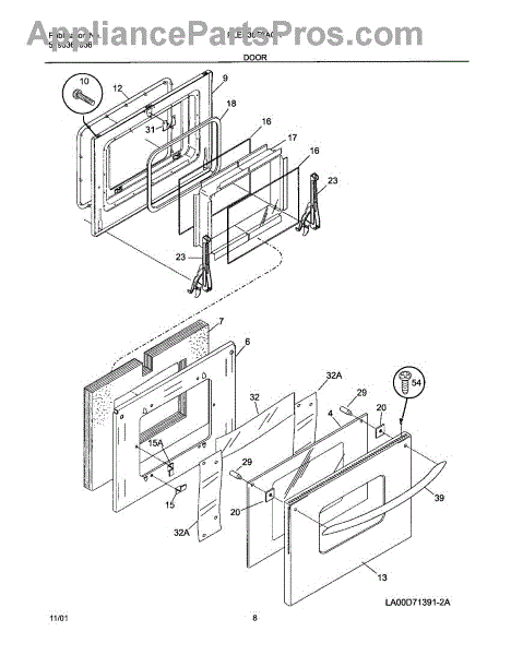 This is a #8 screw, 0.500 inch long, used to secure panels and components in appliances. It provides a correct-fit fastener for repairs where the original #8 x 1/2" screw was required, restoring proper assembly and stability. What it does: