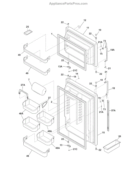 The Door Bin is an OEM part for Frigidaire refrigerators. It provides additional storage space on the refrigerator door, allowing for the convenient organization of smaller items such as condiments, beverages, and jars. This bin is designed to fit securely into the slots on the refrigerator door, making it easy to remove and clean when necessary.