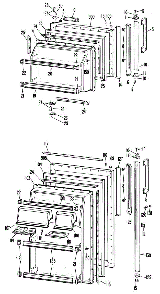 Hardware fasteners for securing refrigerator door panels and components. Includes screws, nuts, and washers for assembly. Replace missing or stripped pieces.