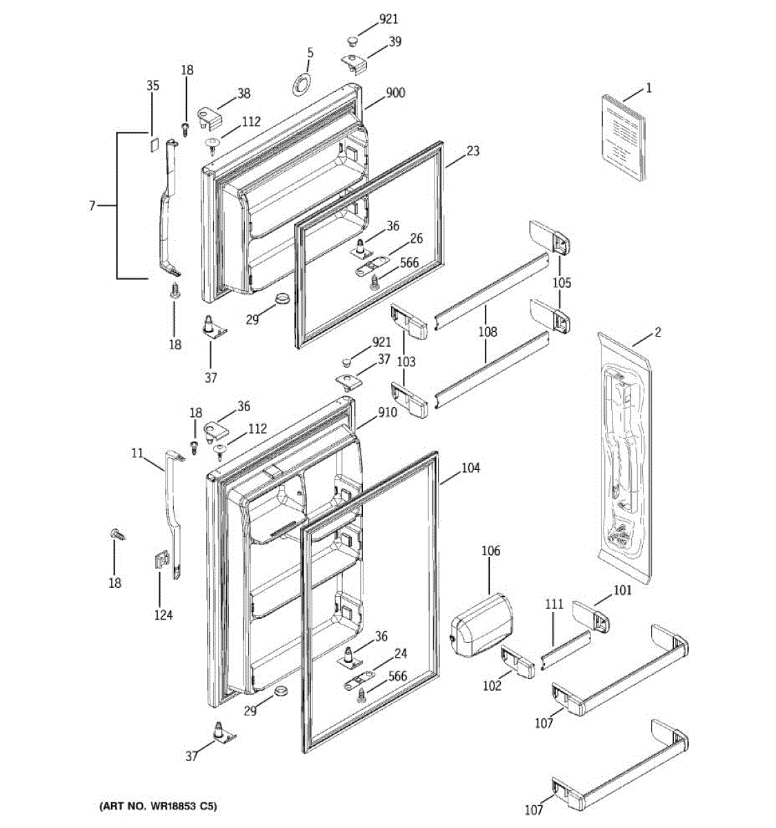 Replacement door shelf bar for refrigerator fresh food compartment. Secures bottles, jars, and condiments on door storage. Order when broken or cracked.