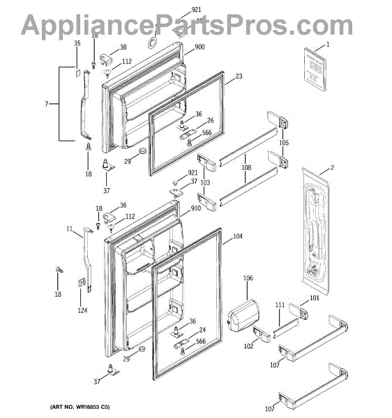 Replacement door handle assembly for refrigerators. Installs on the door exterior. Needed when original handle is cracked, broken, or missing.