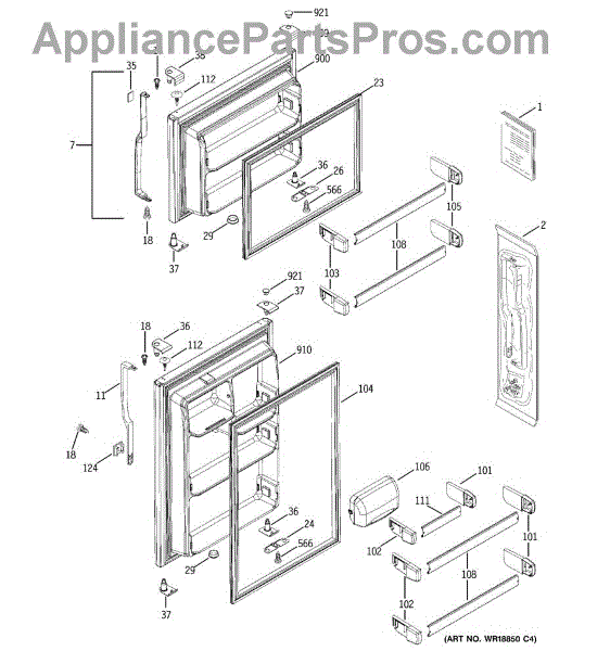 Seals the fresh food door to maintain temperature and prevent air leaks. Replace if you notice condensation, frost buildup, or warm air entering. Confirm fit with your model number.