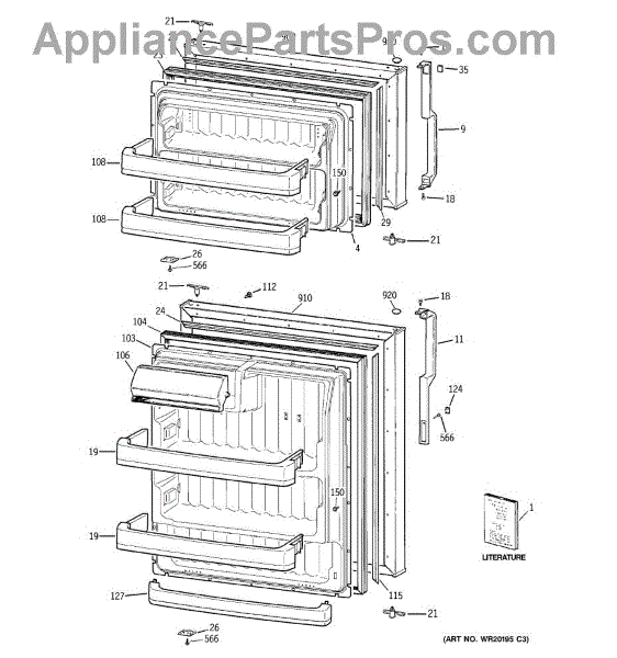 The Freezer Door Shelf Bar is an OEM part compatible with GE refrigerators. This component serves as a support and retaining bar for the shelves located on the inside of the freezer door, ensuring they remain securely in place. This shelf bar measures