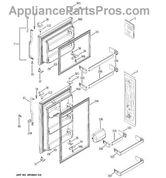 Replacement door handle assembly for refrigerators. Installs on the door exterior. Needed when original handle is cracked, broken, or missing.