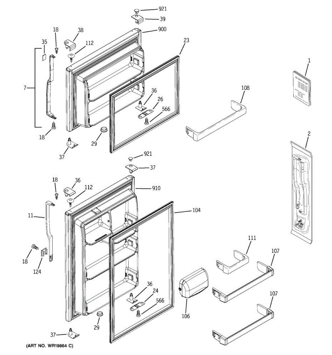 Replacement door handle assembly for refrigerators. Installs on the door exterior. Needed when original handle is cracked, broken, or missing.