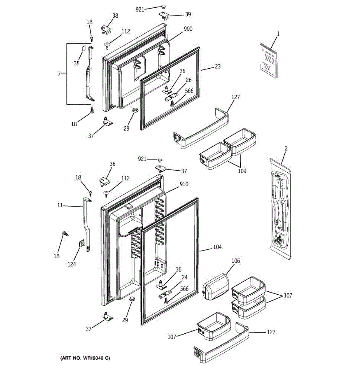 Seals the fresh food door to maintain temperature and prevent air leaks. Replace if you notice condensation, frost buildup, or warm air entering. Confirm fit with your model number.