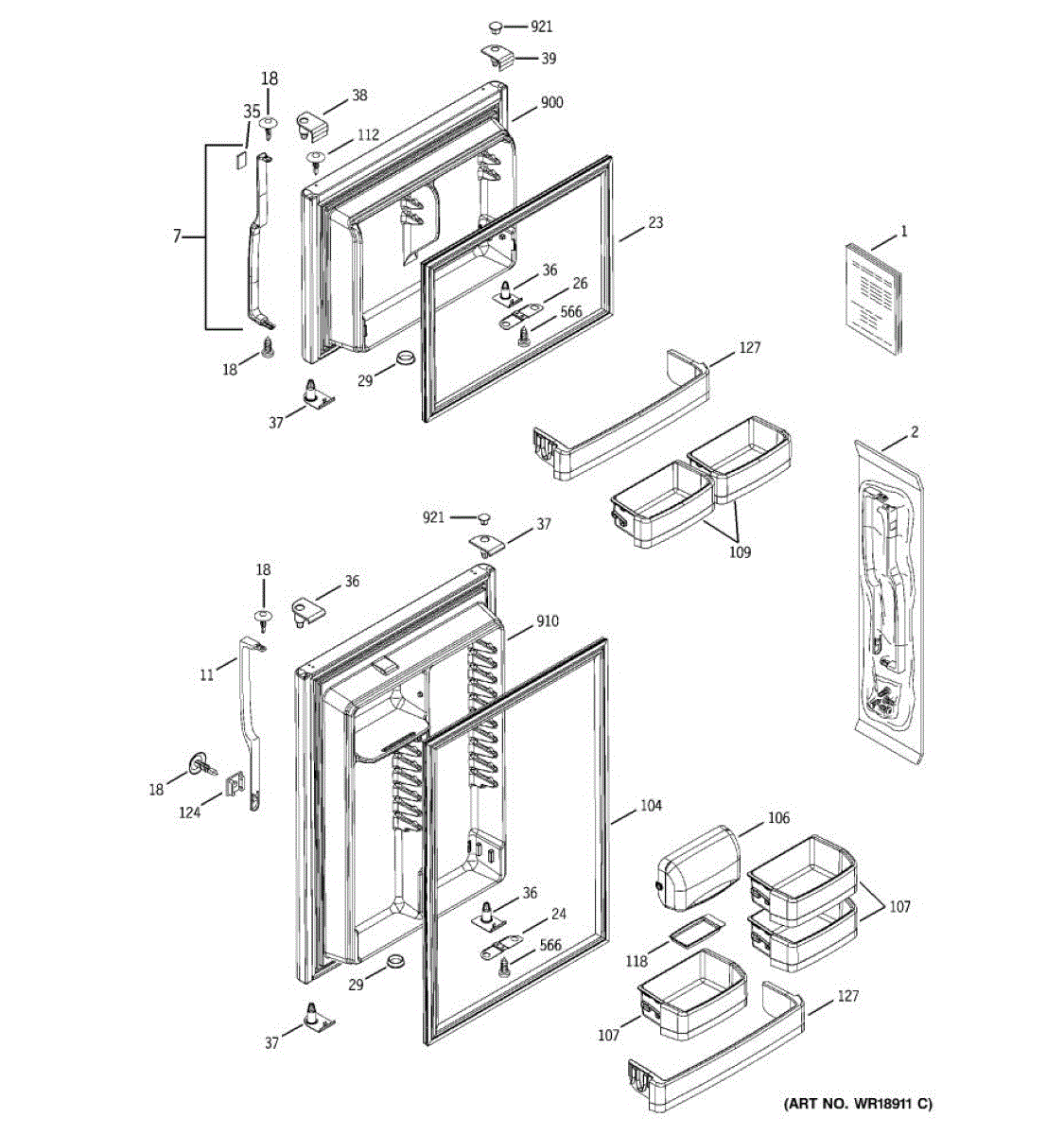 Seals the fresh food door to maintain temperature and prevent air leaks. Replace if you notice condensation, frost buildup, or warm air entering. Confirm fit with your model number.