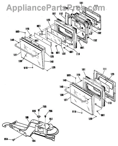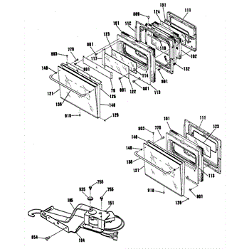 This oven door latch assembly secures the door during the self-clean cycle and reports lock status to the control. Replace a worn or failed latch to restore safe locking and reliable self-clean operation.