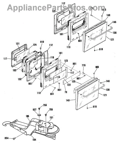 This oven door latch assembly secures the door during the self-clean cycle and reports lock status to the control. Replace a worn or failed latch to restore safe locking and reliable self-clean operation.