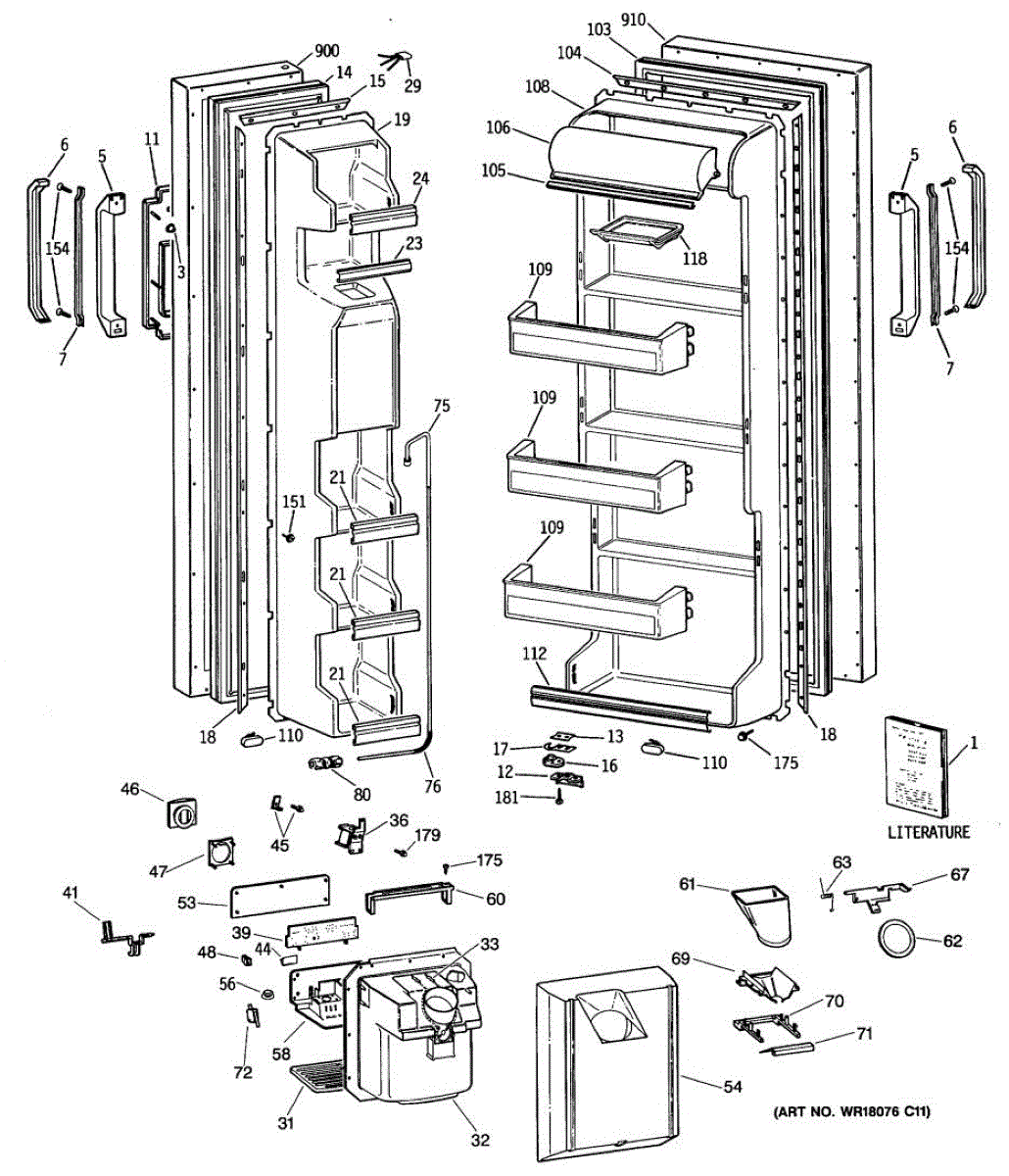 Ice dispenser door assembly seals the ice chute opening on your refrigerator. Replace if cracked, warped, or the rubber gasket is damaged and leaking air.