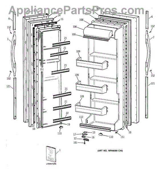 Replacement door handle for GE side-by-side refrigerators. Install this handle when your original is cracked, broken, discolored, or worn from years of use.