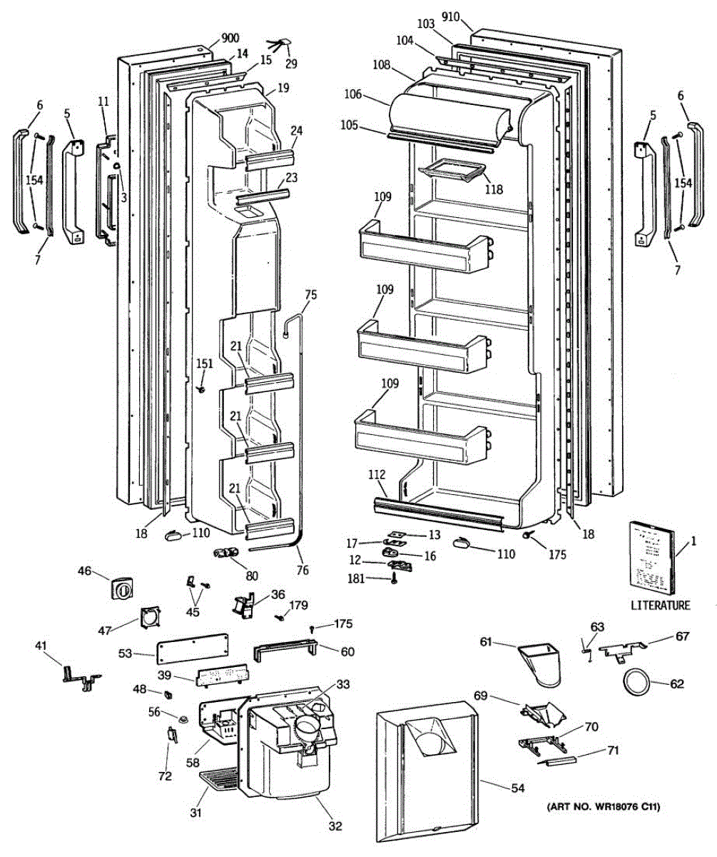 Ice dispenser door assembly seals the ice chute opening on your refrigerator. Replace if cracked, warped, or the rubber gasket is damaged and leaking air.