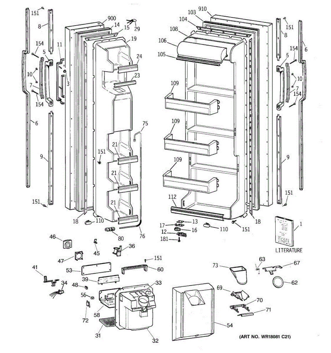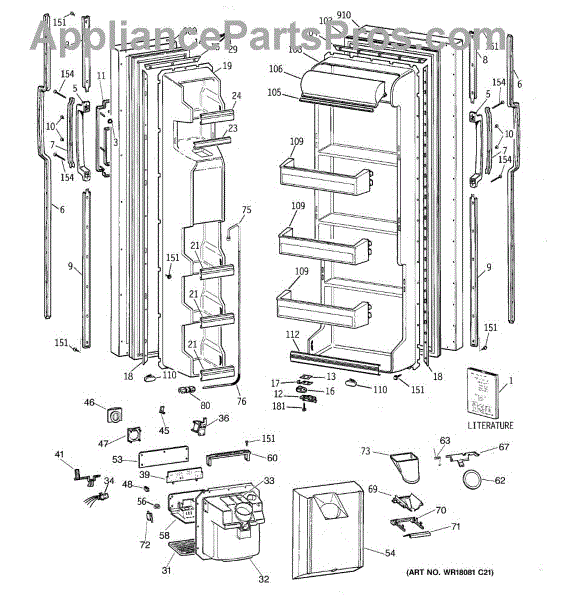 Ice dispenser door assembly seals the ice chute opening on your refrigerator. Replace if cracked, warped, or the rubber gasket is damaged and leaking air.