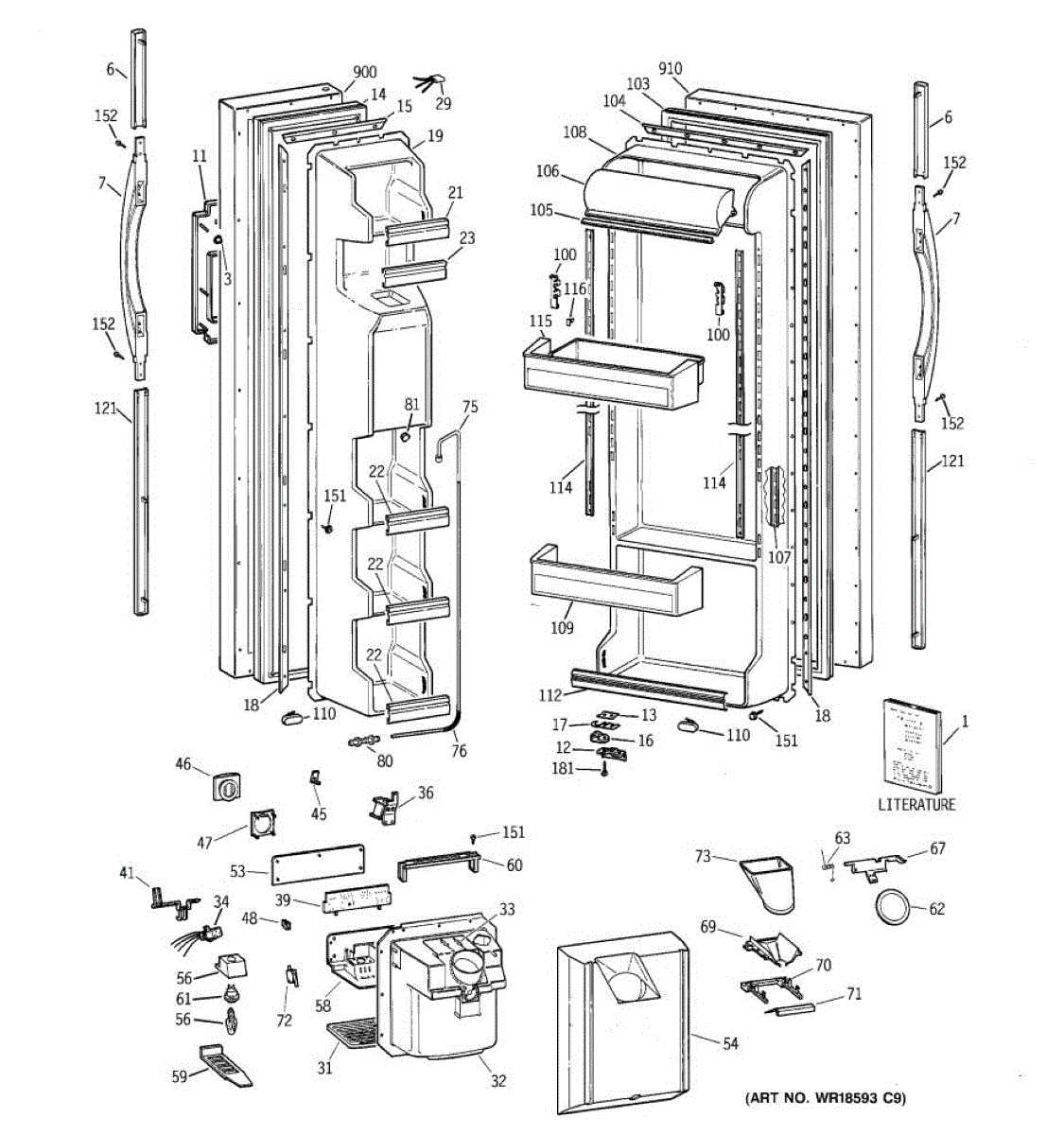 Ice dispenser door assembly seals the ice chute opening on your refrigerator. Replace if cracked, warped, or the rubber gasket is damaged and leaking air.