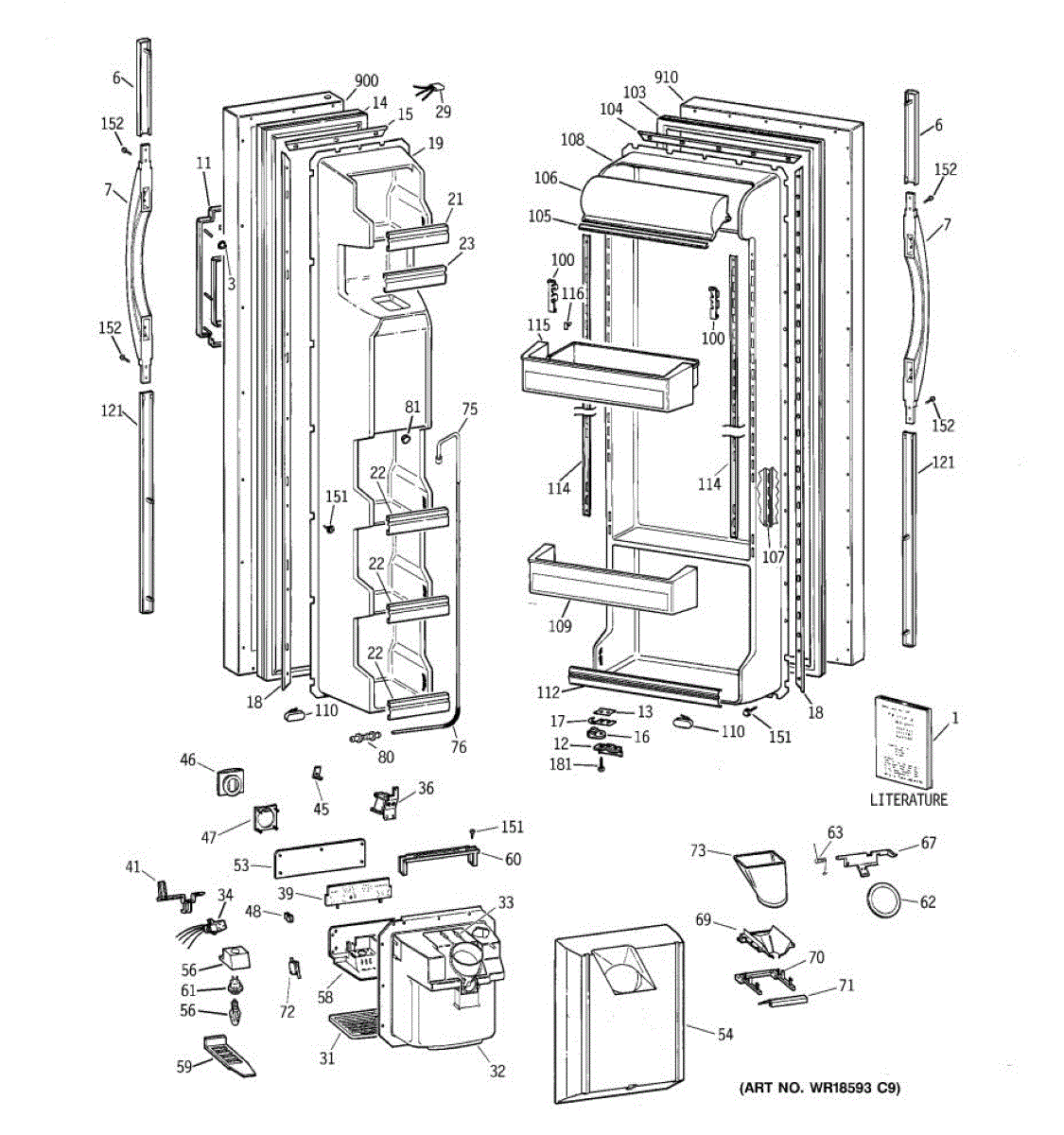 Ice dispenser door assembly seals the ice chute opening on your refrigerator. Replace if cracked, warped, or the rubber gasket is damaged and leaking air.