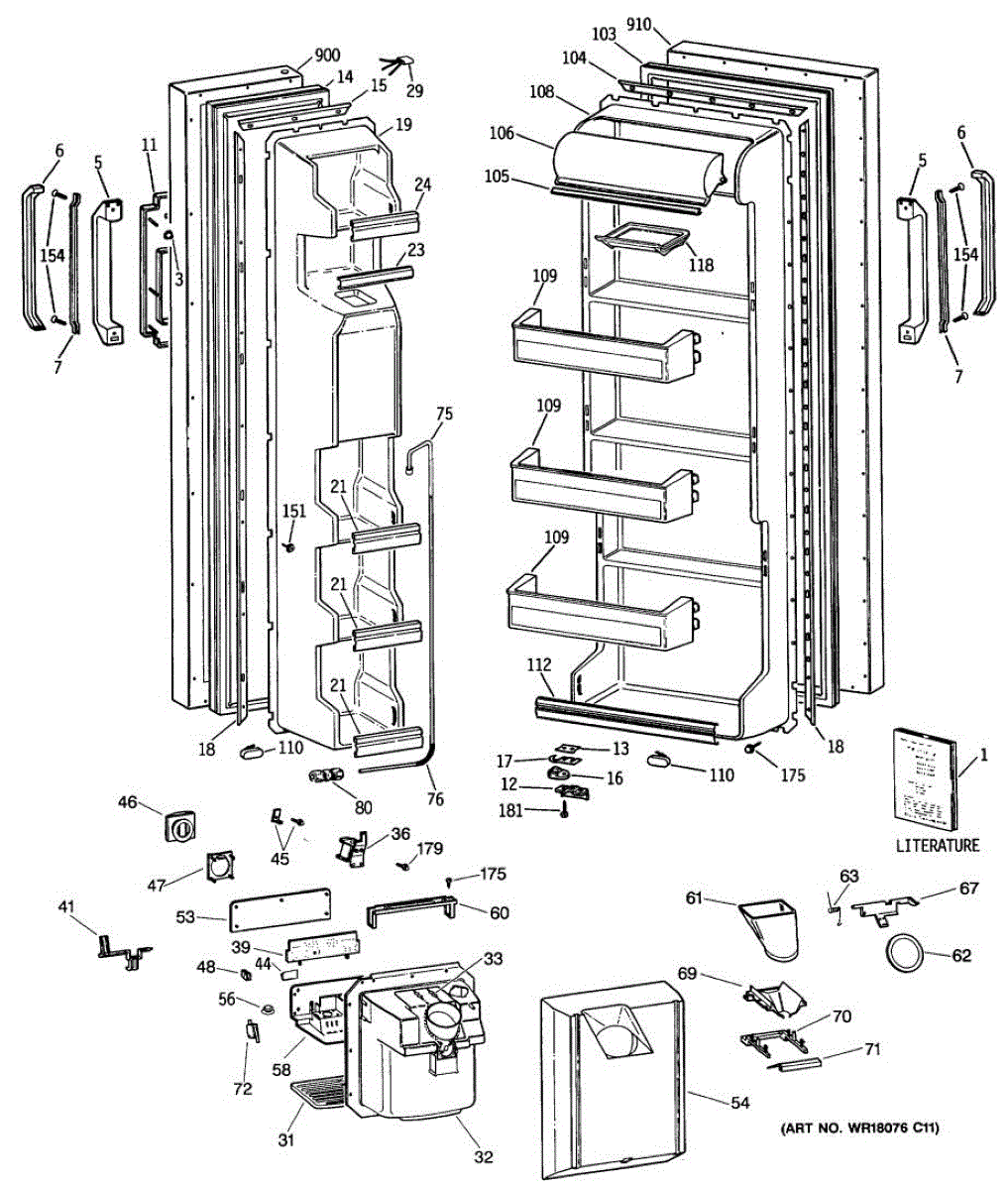Ice dispenser door assembly seals the ice chute opening on your refrigerator. Replace if cracked, warped, or the rubber gasket is damaged and leaking air.