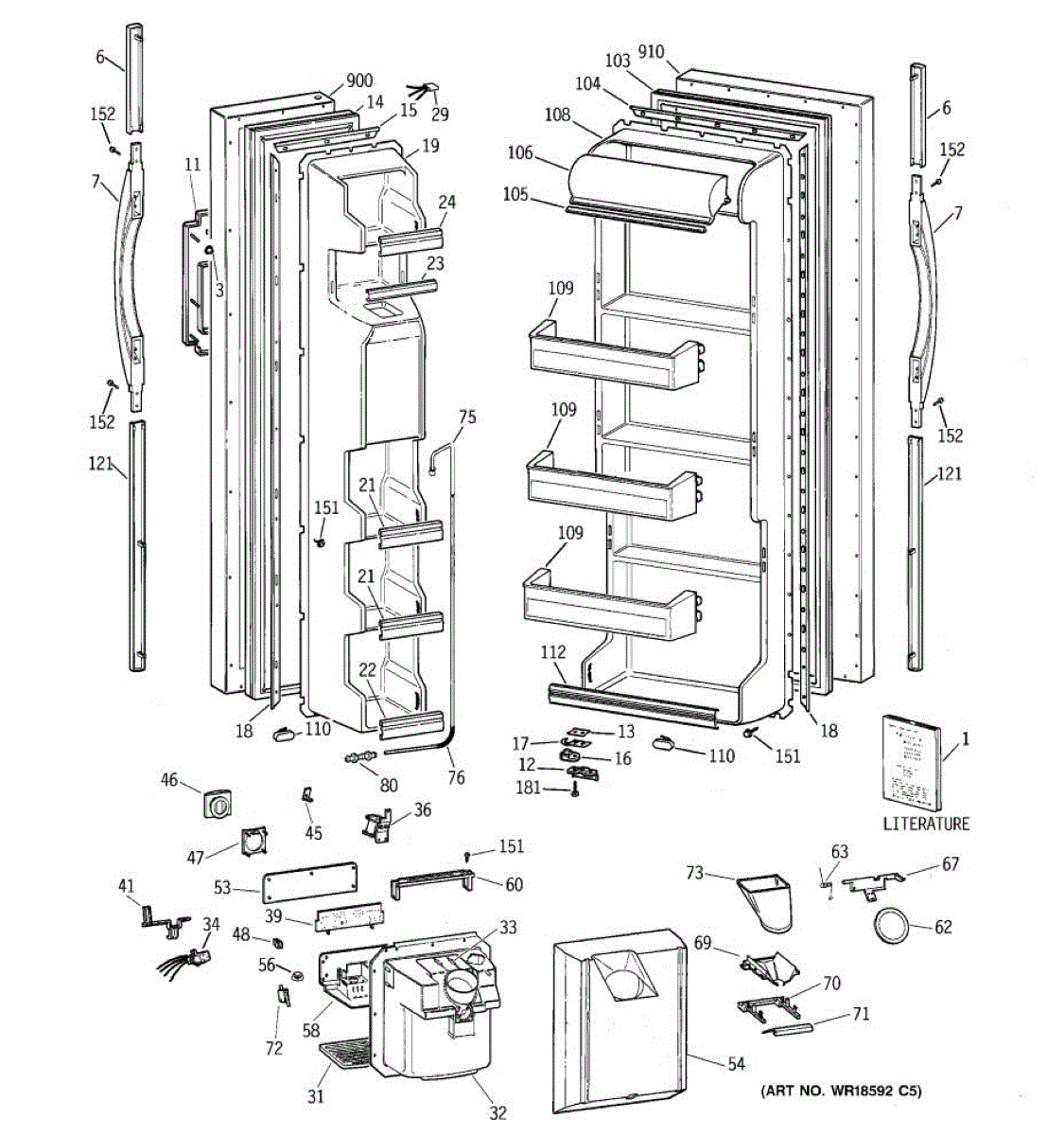 Ice dispenser door assembly seals the ice chute opening on your refrigerator. Replace if cracked, warped, or the rubber gasket is damaged and leaking air.