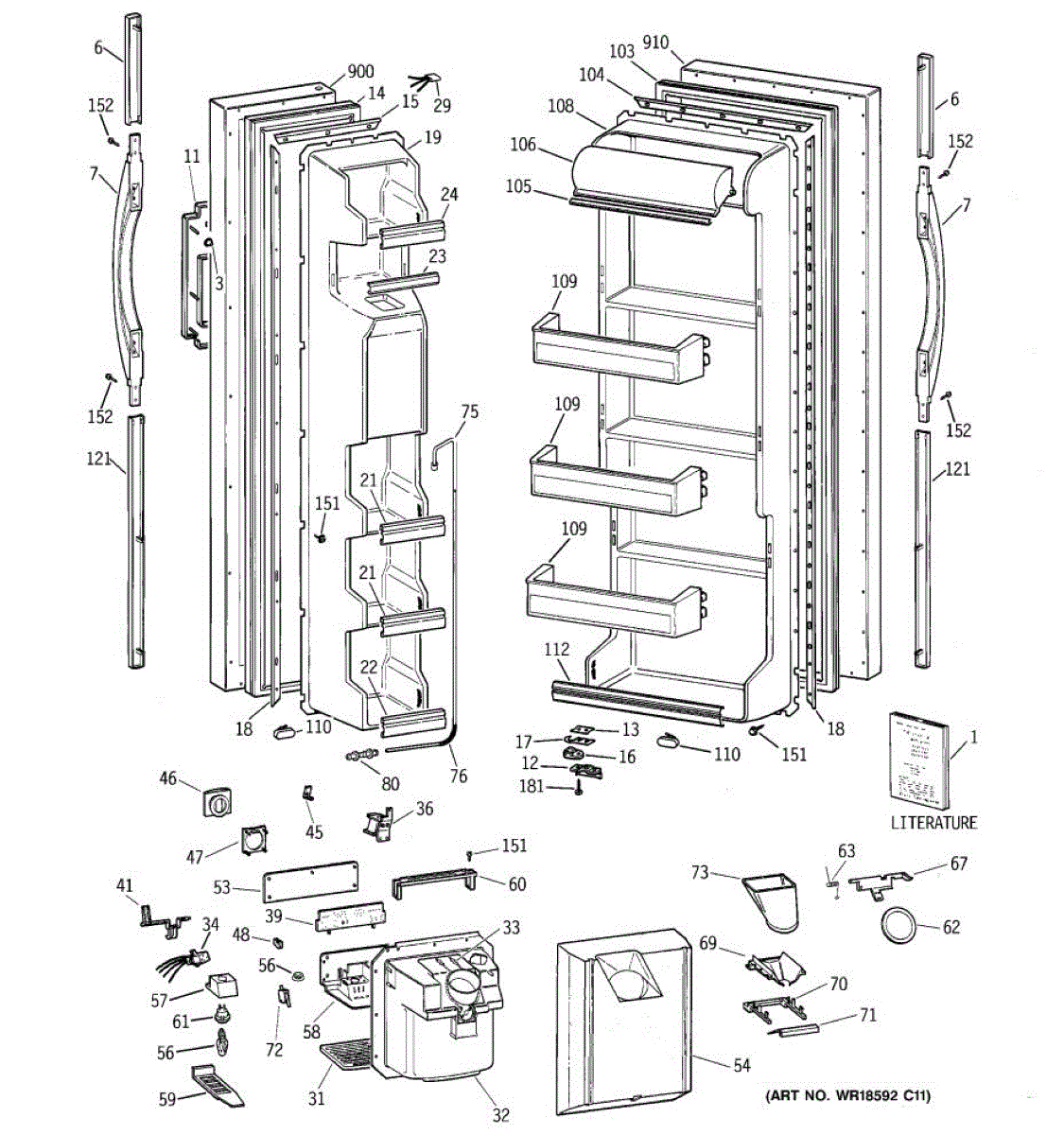 Ice dispenser door assembly seals the ice chute opening on your refrigerator. Replace if cracked, warped, or the rubber gasket is damaged and leaking air.