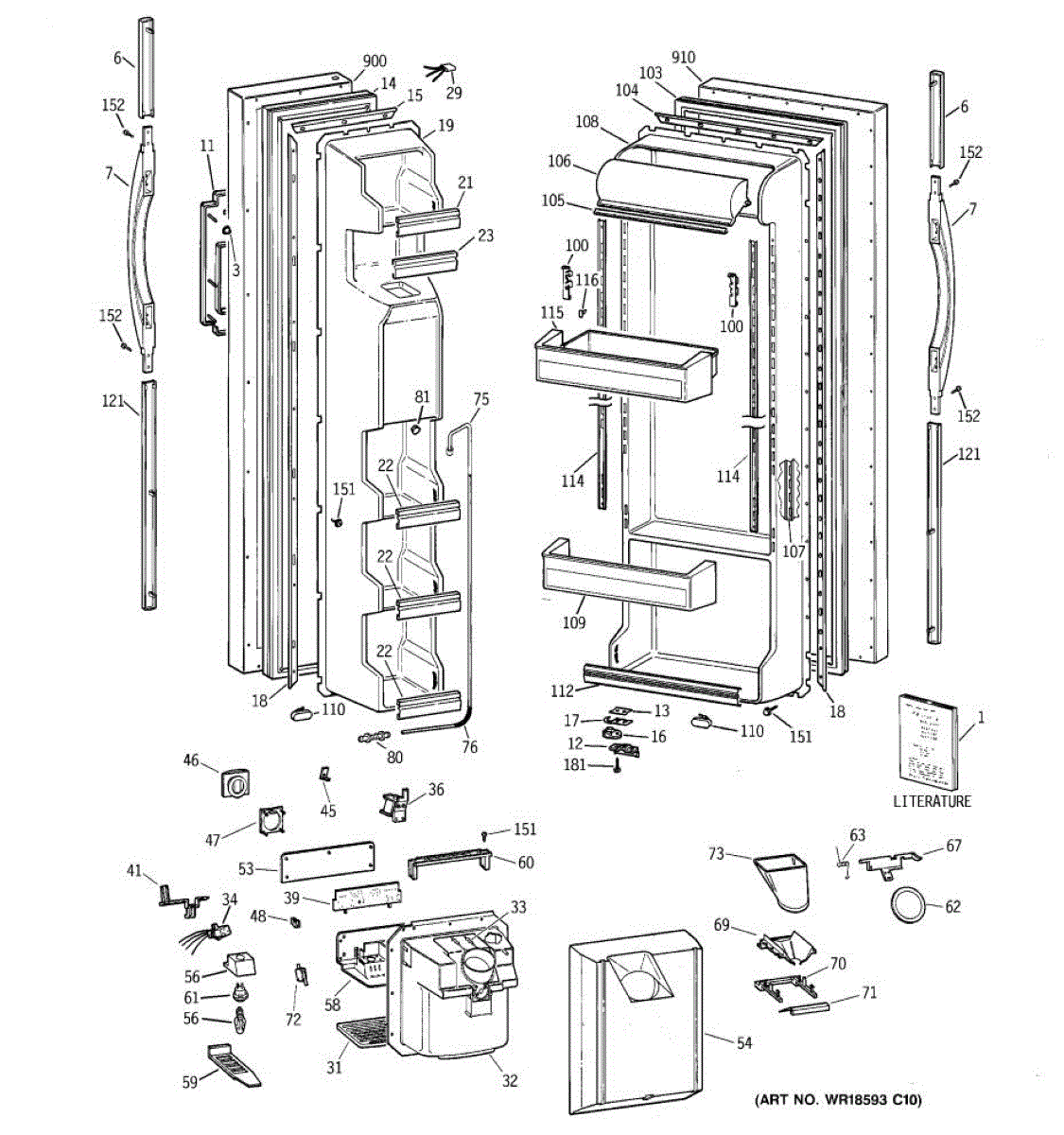 Ice dispenser door assembly seals the ice chute opening on your refrigerator. Replace if cracked, warped, or the rubber gasket is damaged and leaking air.