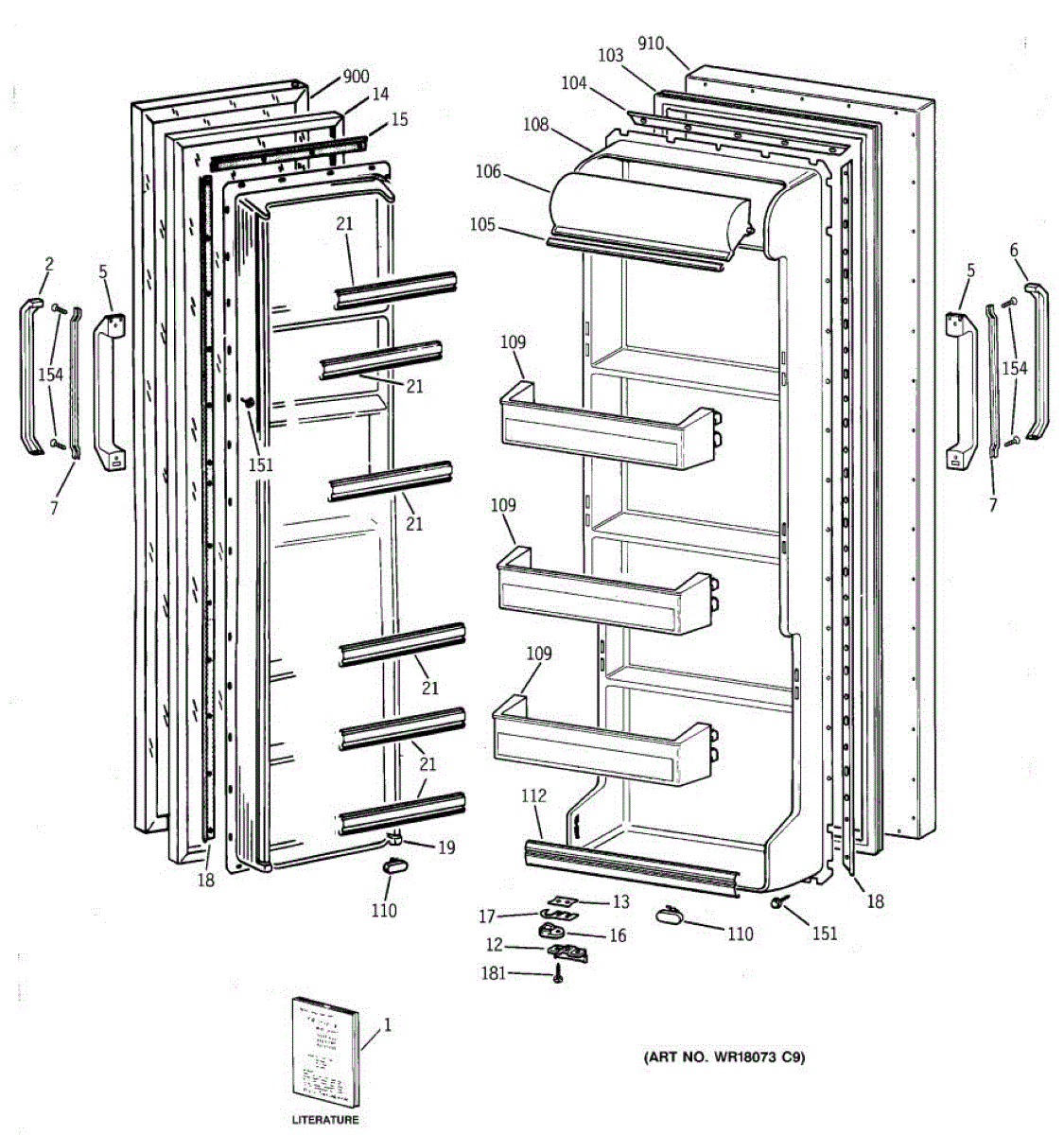 Refrigerator handle stiffener that reinforces the door handle assembly. Replace if cracked, broken, or missing to restore proper handle support.