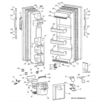 The Ice Door Assembly is an OEM part for GE refrigerators. It is integral to the ice dispenser system, controlling access to the ice chute. This component ensures the efficient delivery of ice cubes or crushed ice when activated and seals off the chute when not in use to maintain the freezer's temperature and prevent frost buildup.