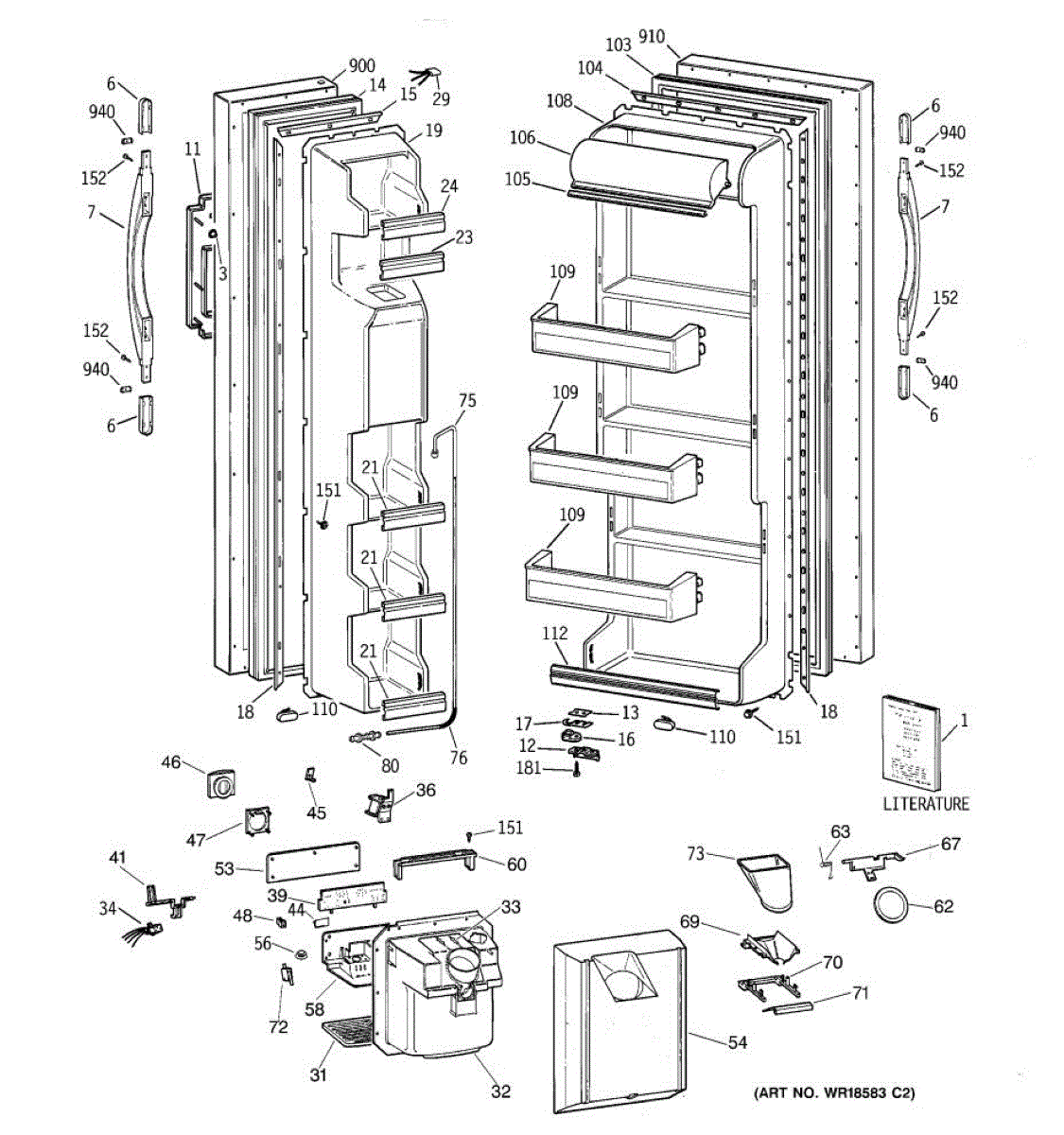 Ice dispenser door assembly seals the ice chute opening on your refrigerator. Replace if cracked, warped, or the rubber gasket is damaged and leaking air.