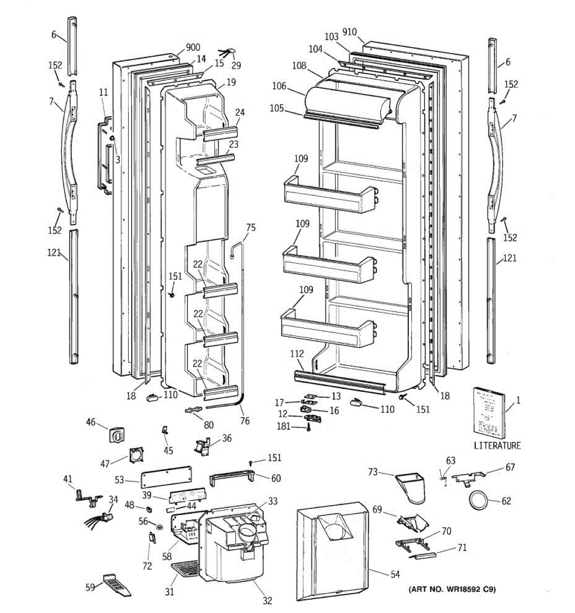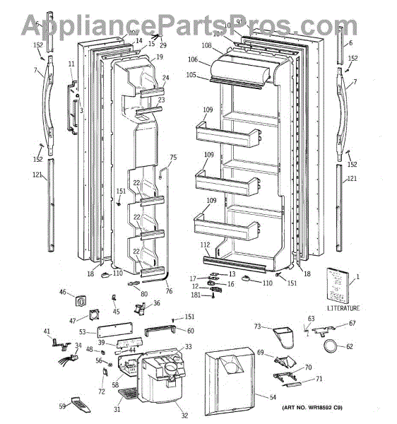 Ice dispenser door assembly seals the ice chute opening on your refrigerator. Replace if cracked, warped, or the rubber gasket is damaged and leaking air.