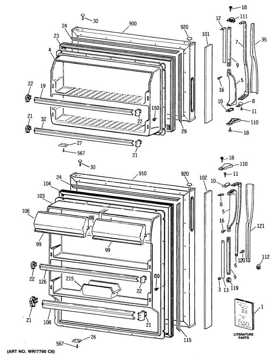 Hardware fasteners for securing refrigerator door panels and components. Includes screws, nuts, and washers for assembly. Replace missing or stripped pieces.