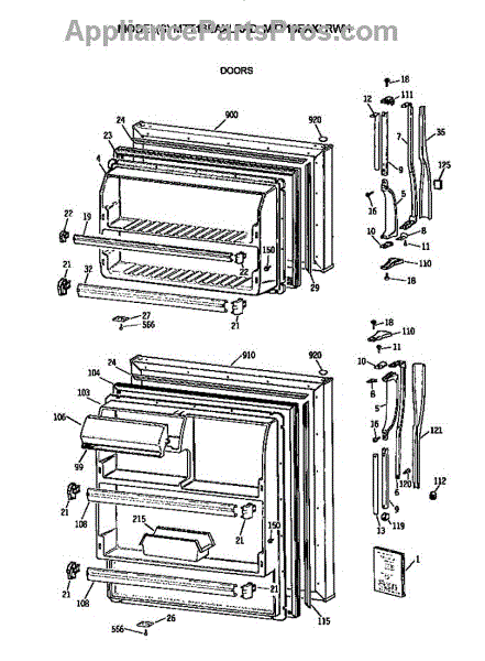 Parts for Ge MTT16EAXLRWH: Doors Parts